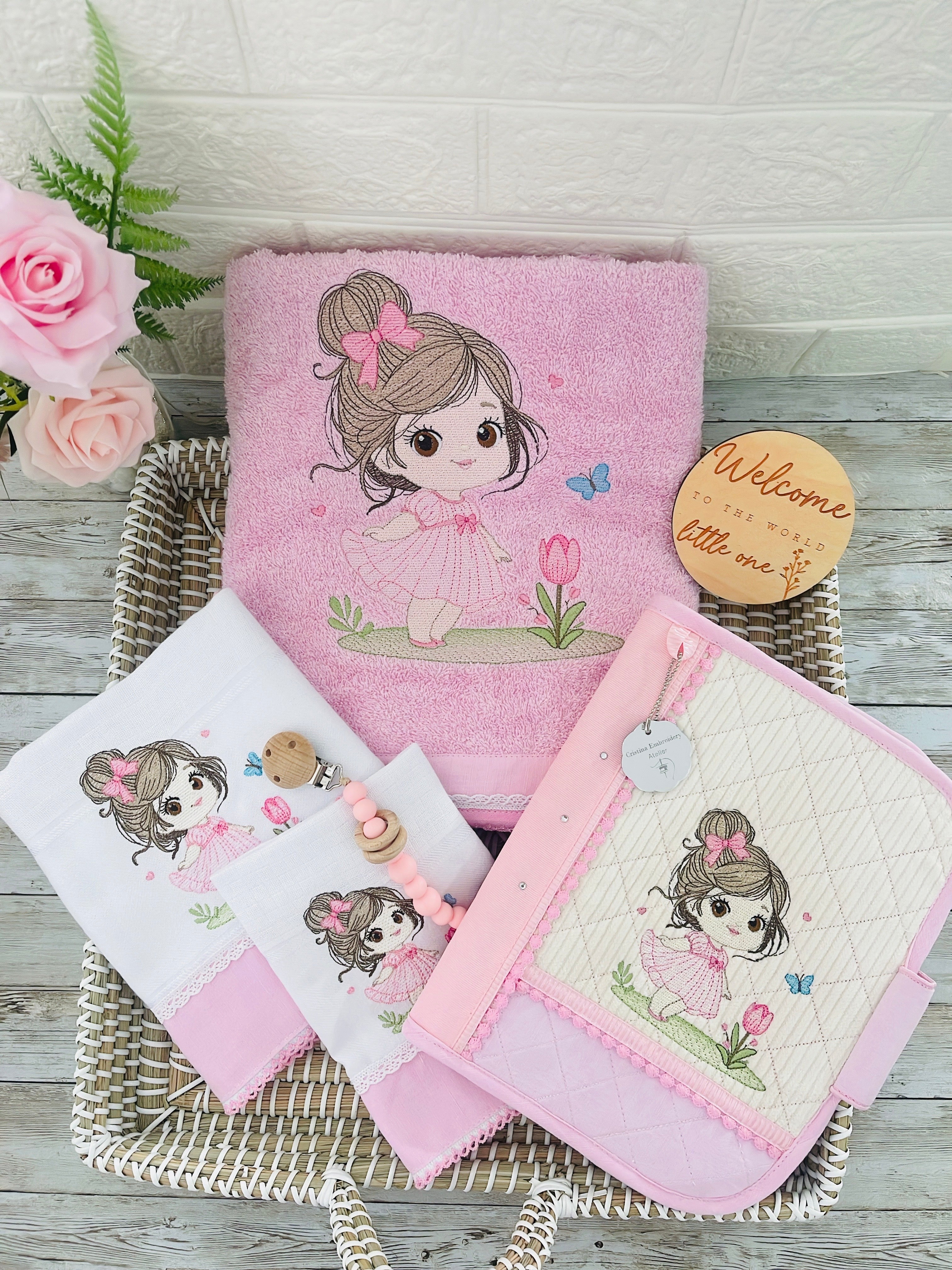 Gift Box Baby Girl Embroidery Classic - Sweet Little Girl in a Dress