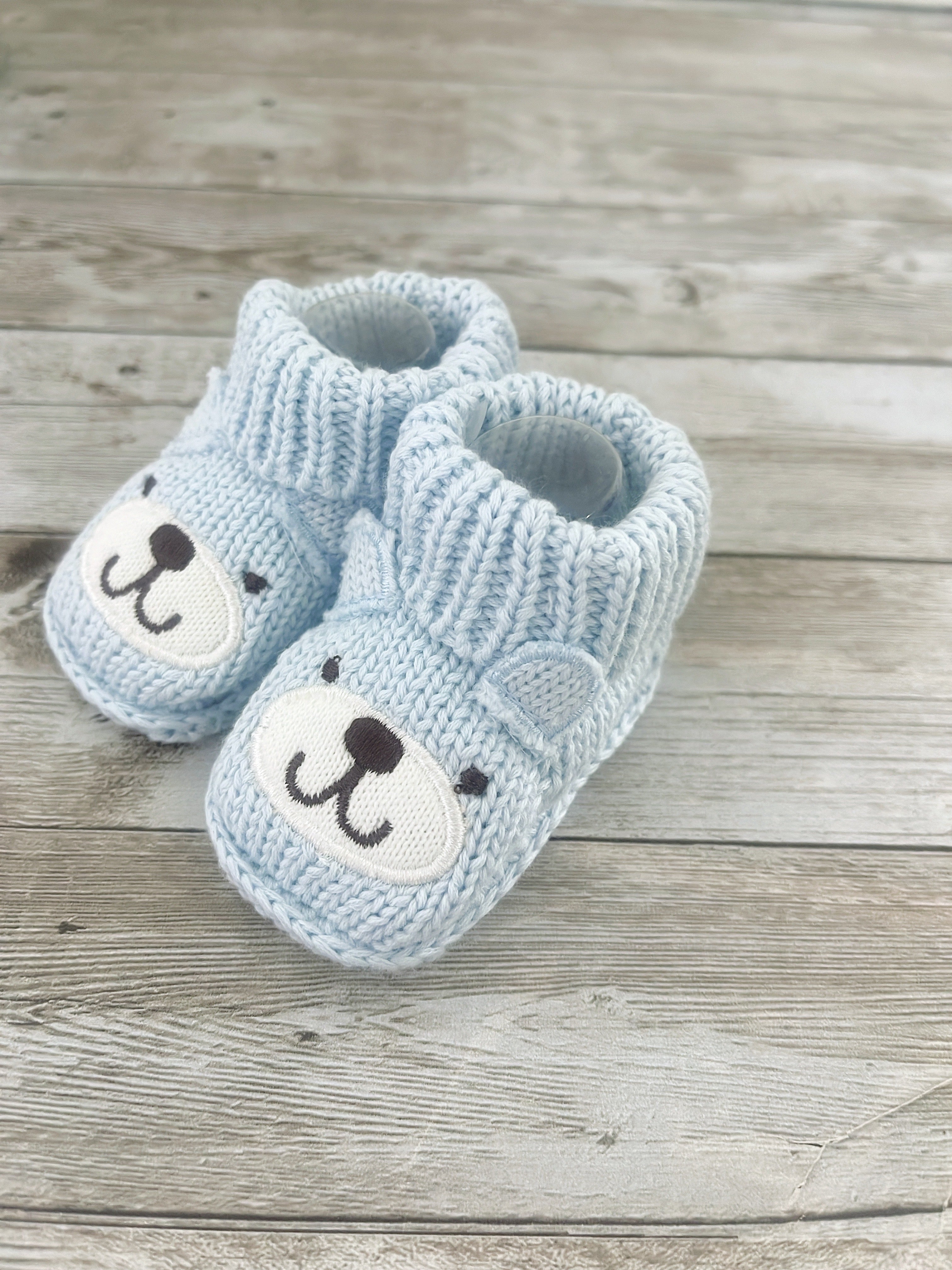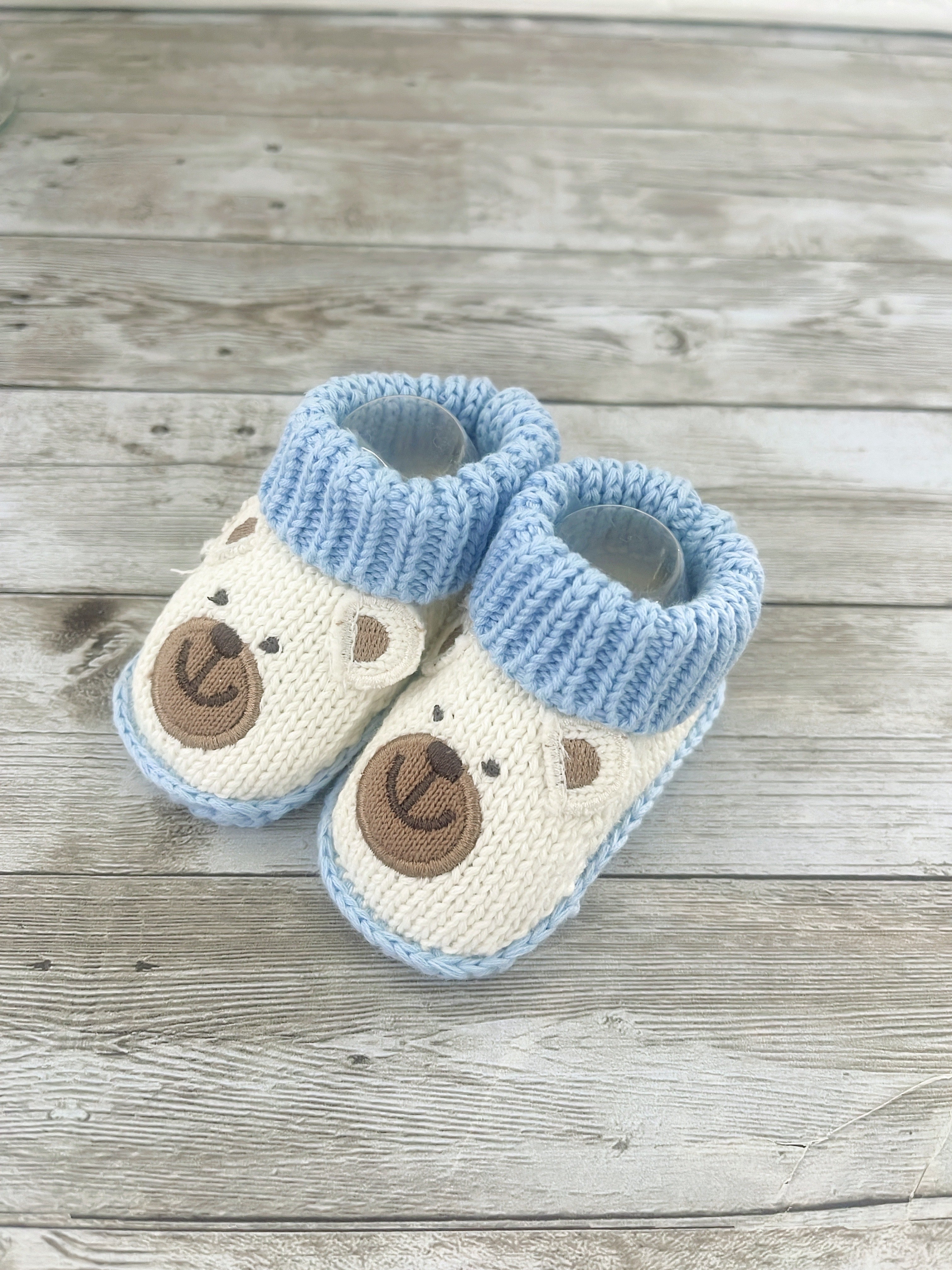 Crochet Booties - Embroidery - Handmade Baby Shoes Teddy Blue/Cream$18.90$25.90
