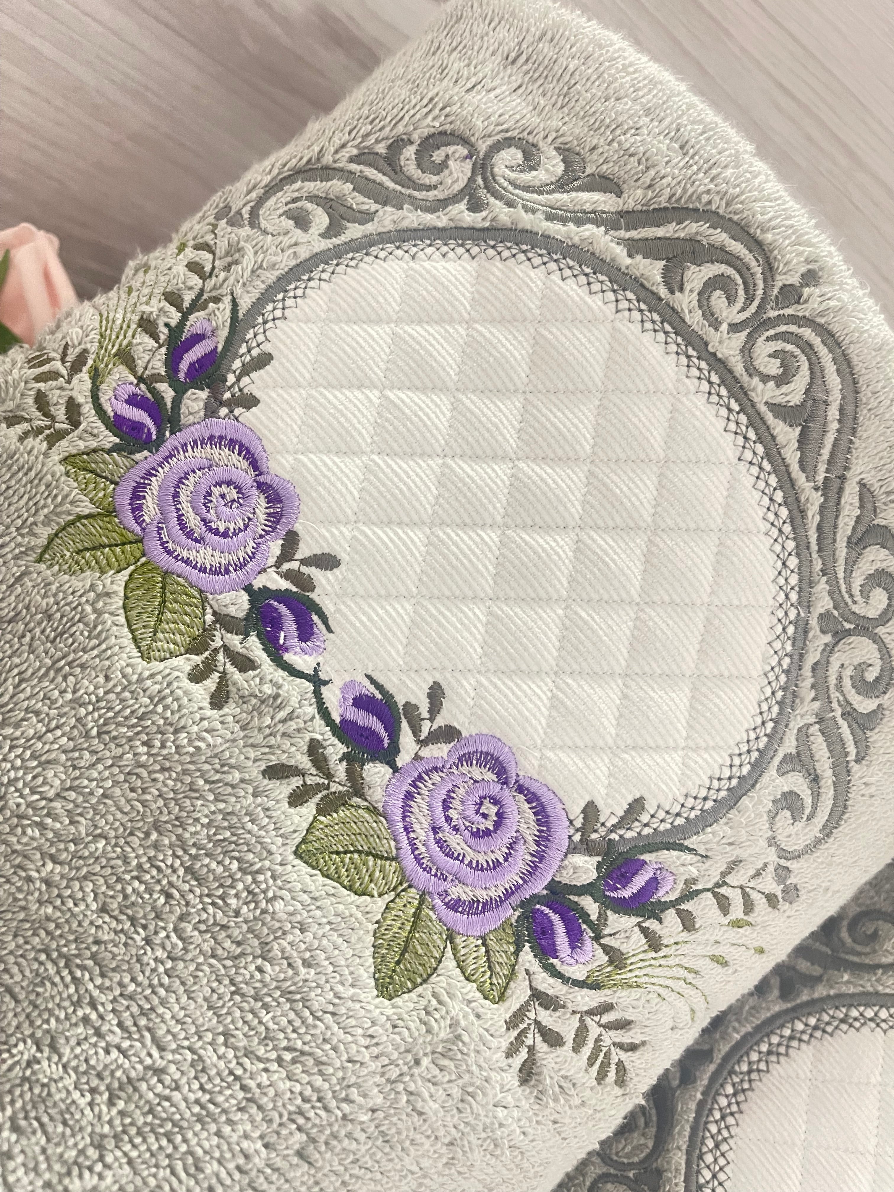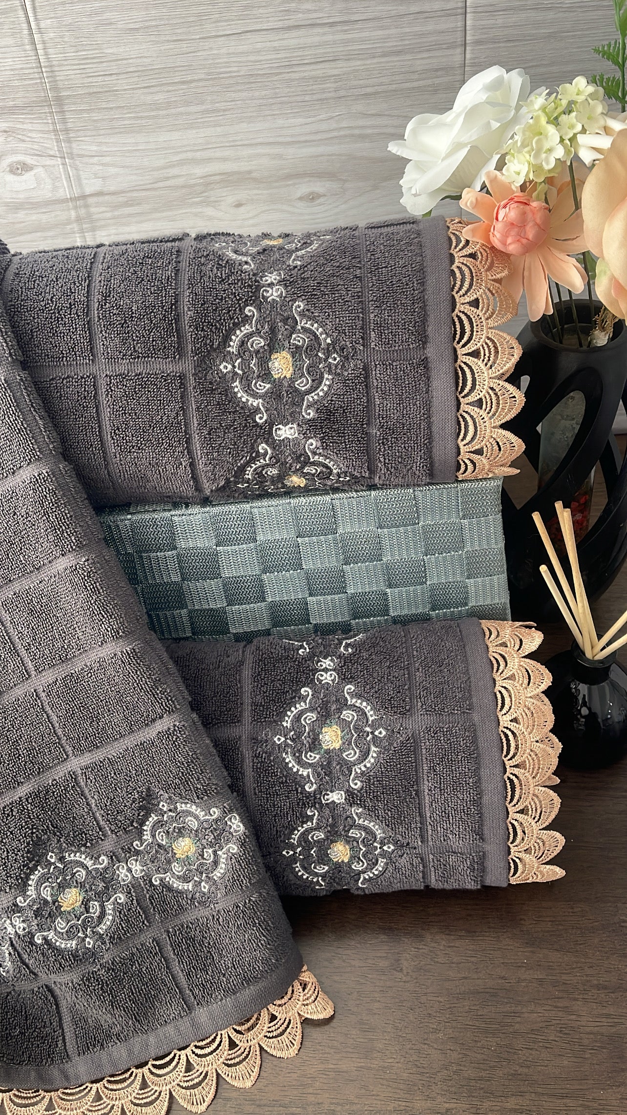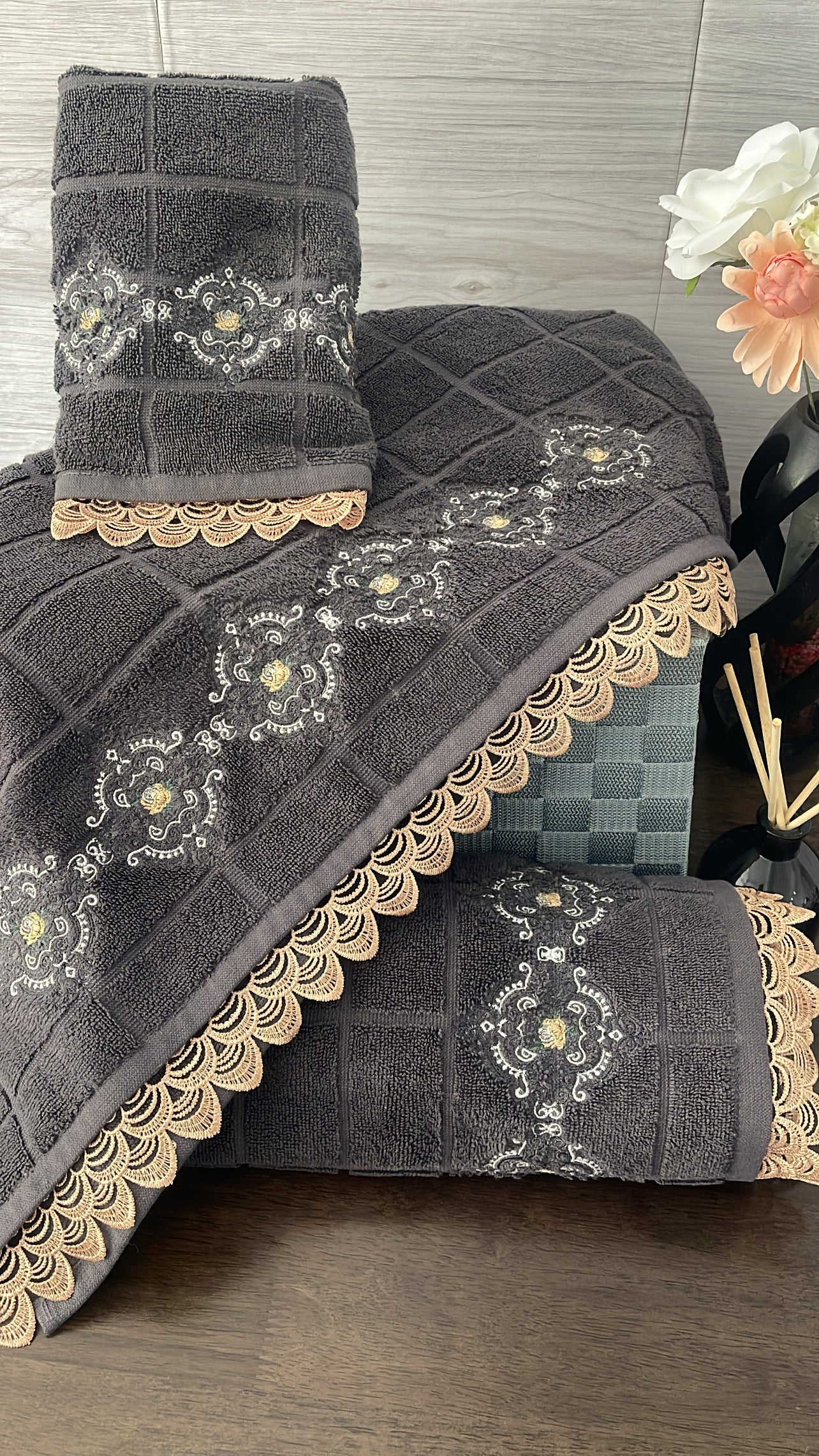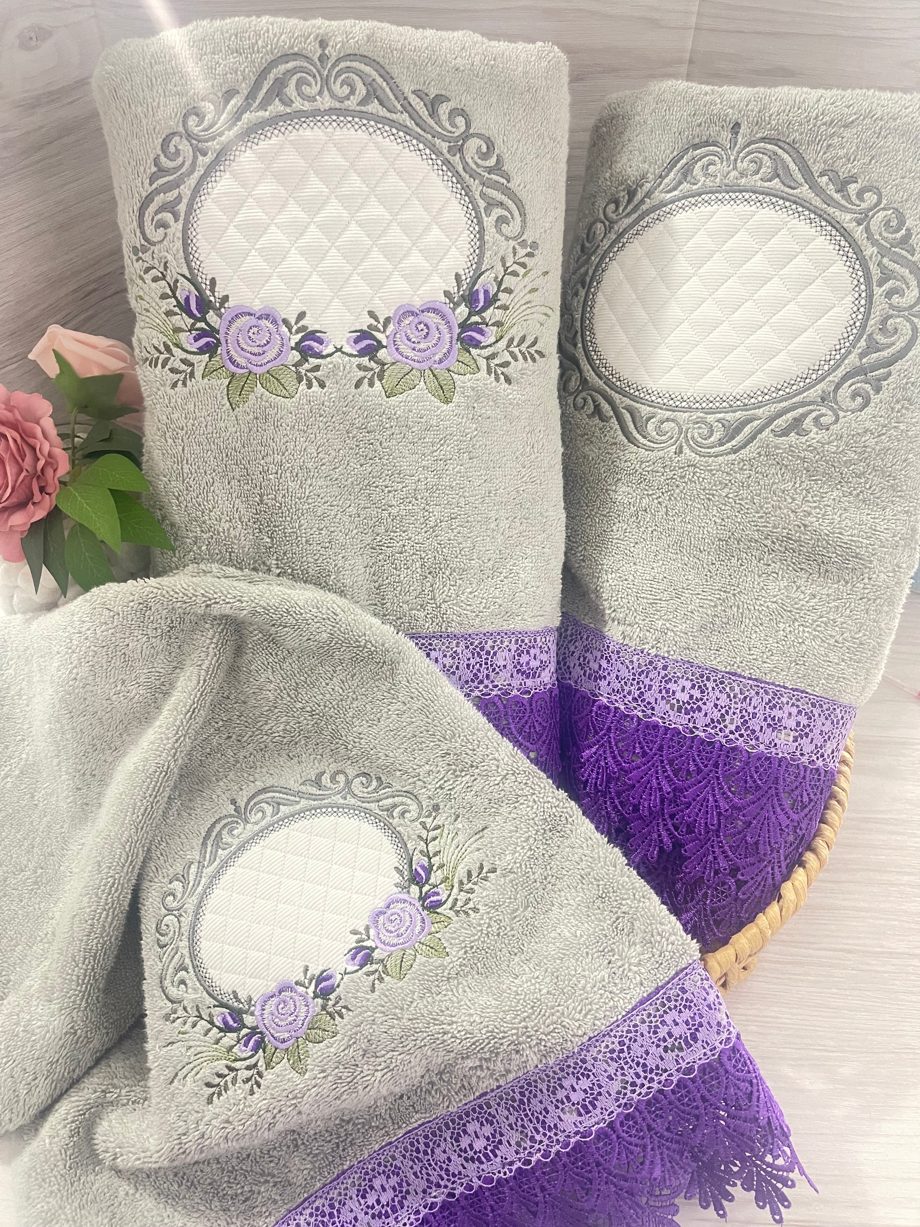 Grey Embroidery Bath Towel Set 3 pcs - Guipire Purple Double$164.99$179.99