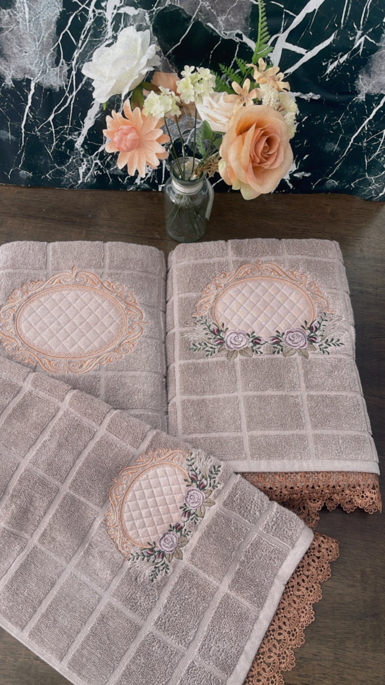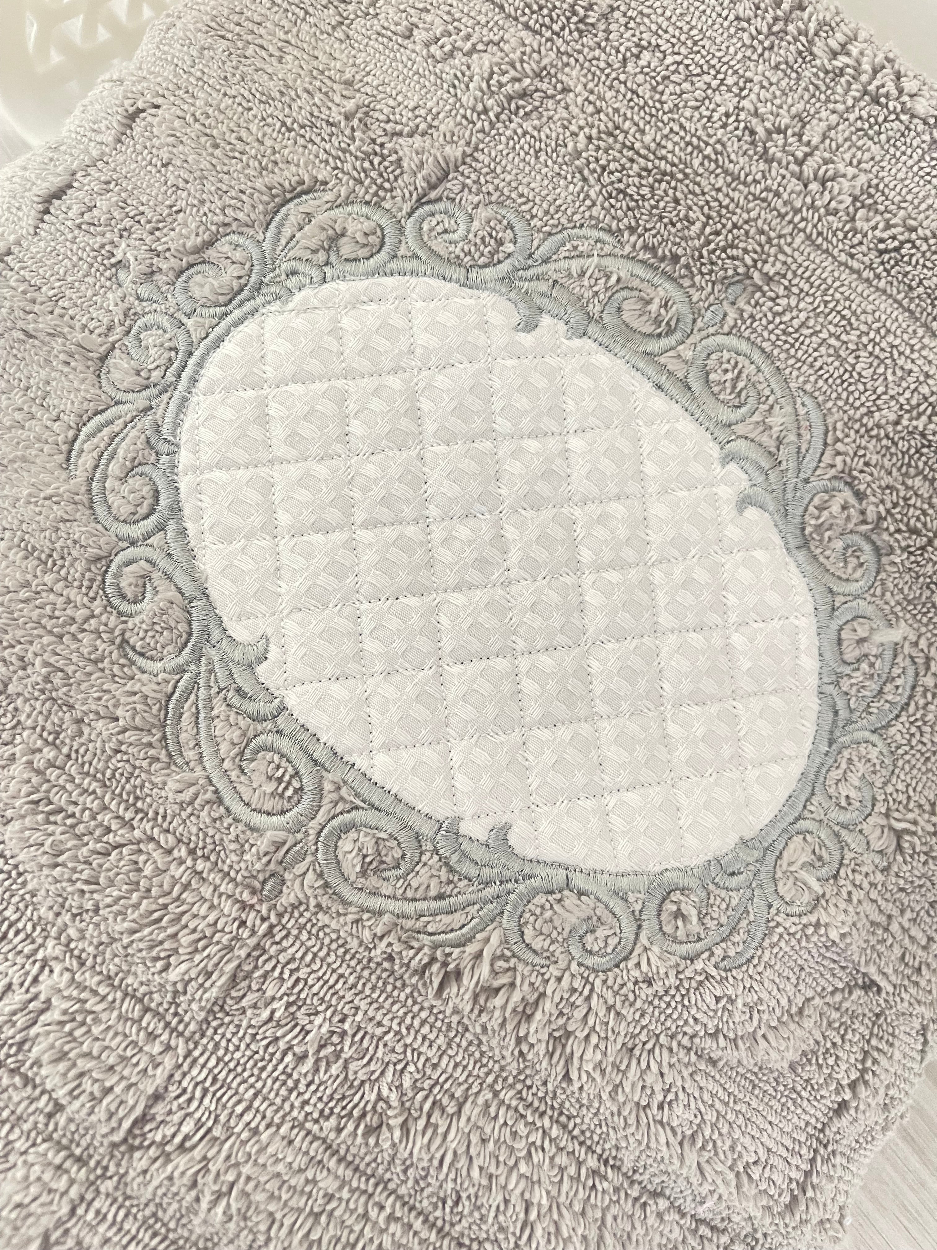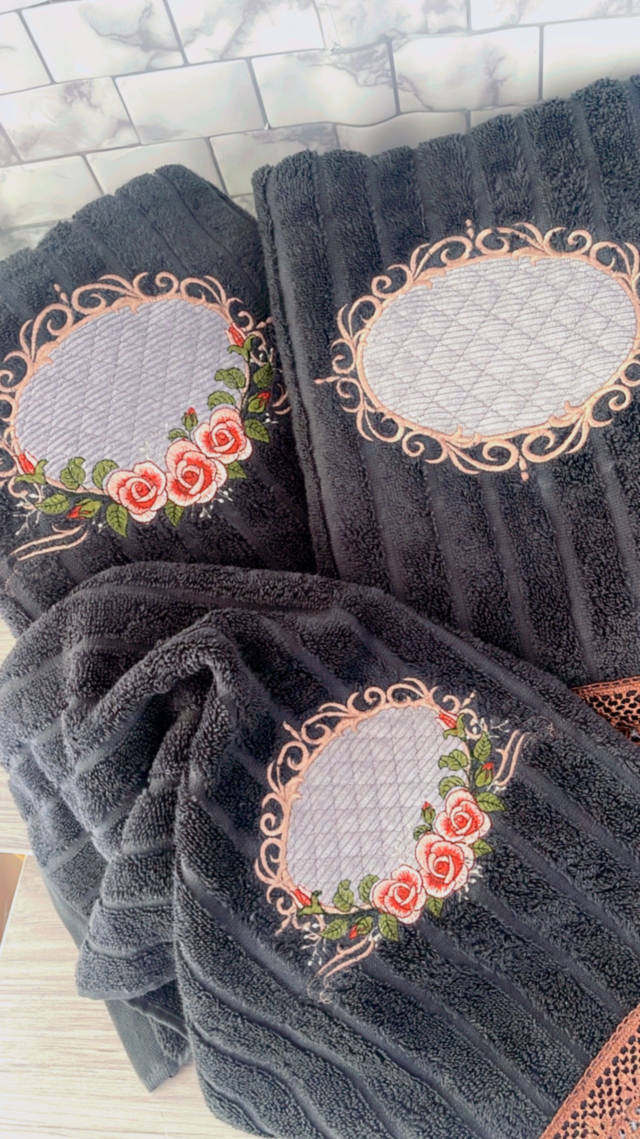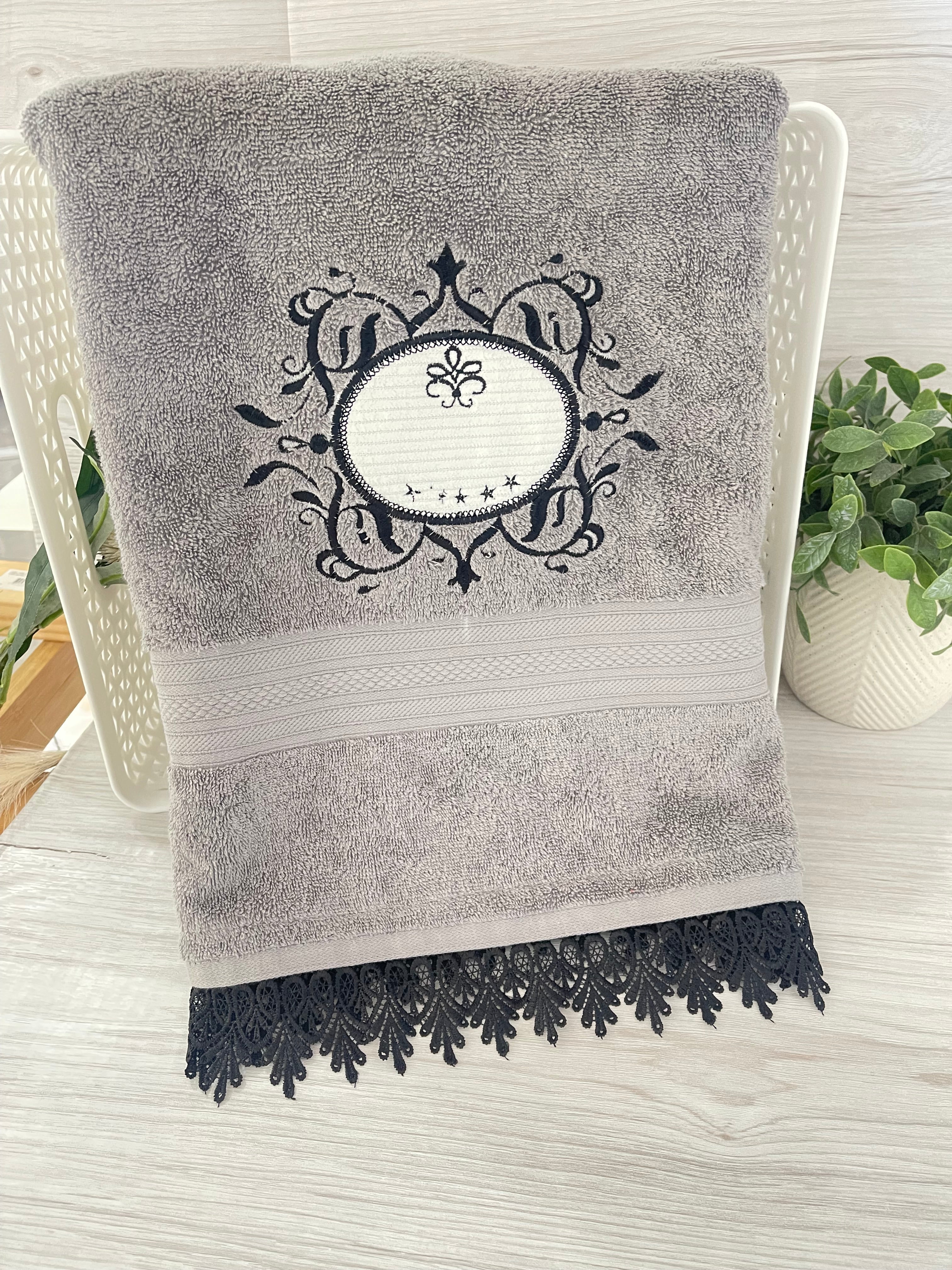 Grey Embroidery Bath Towel Set 3 pcs - Guipire Purple Double$164.99$179.99