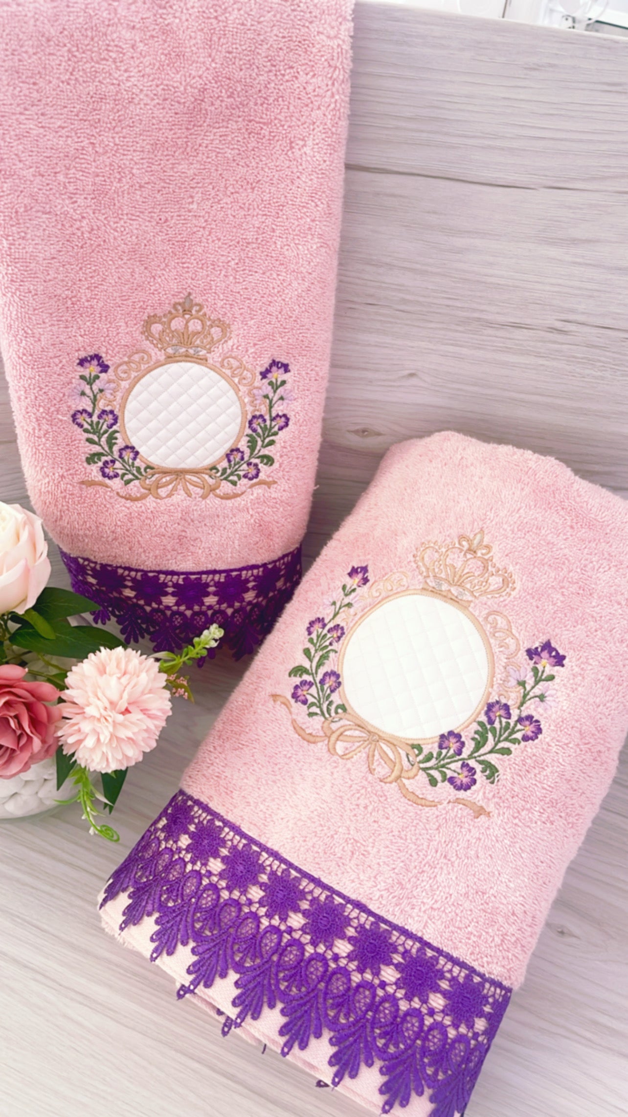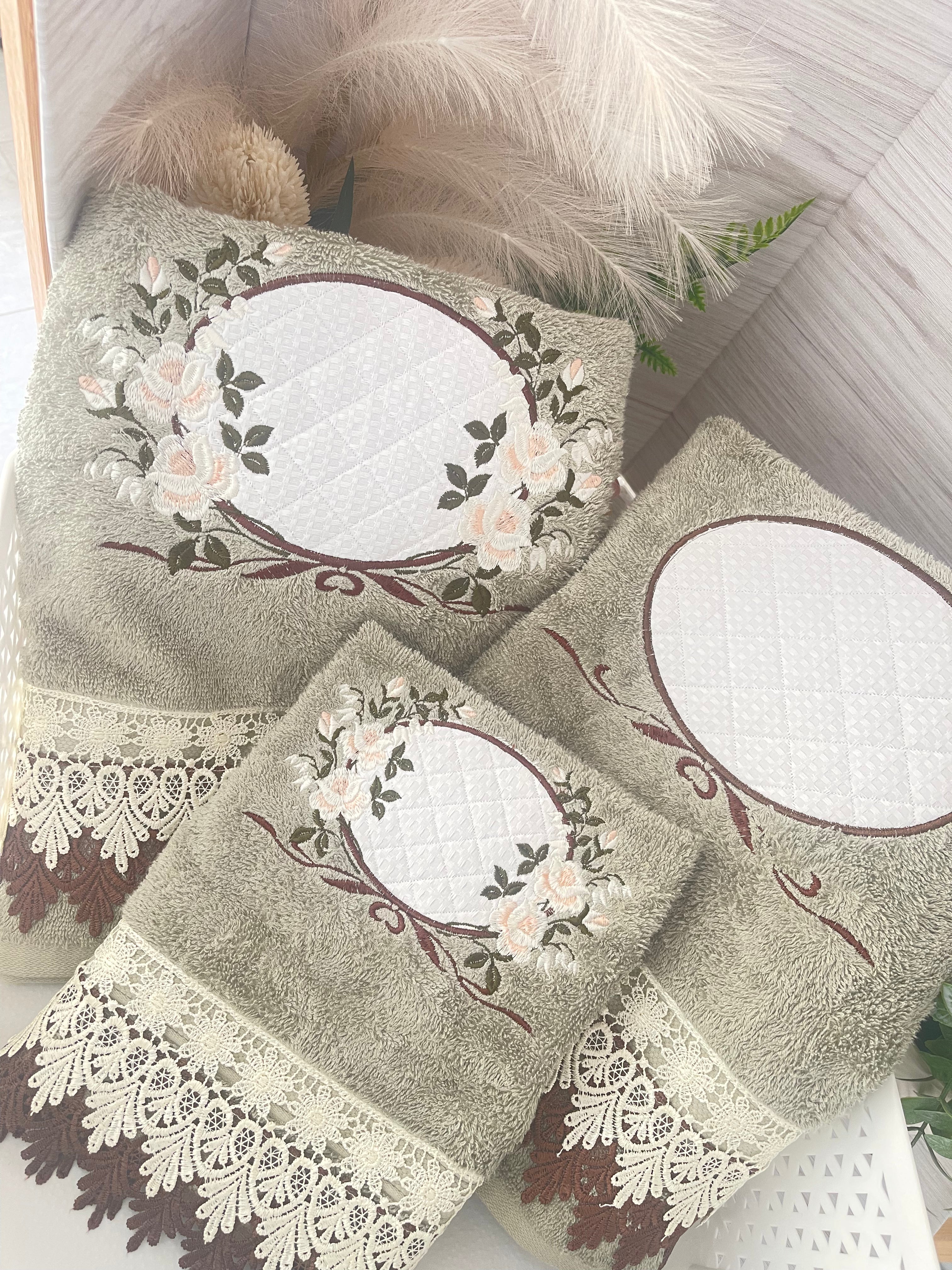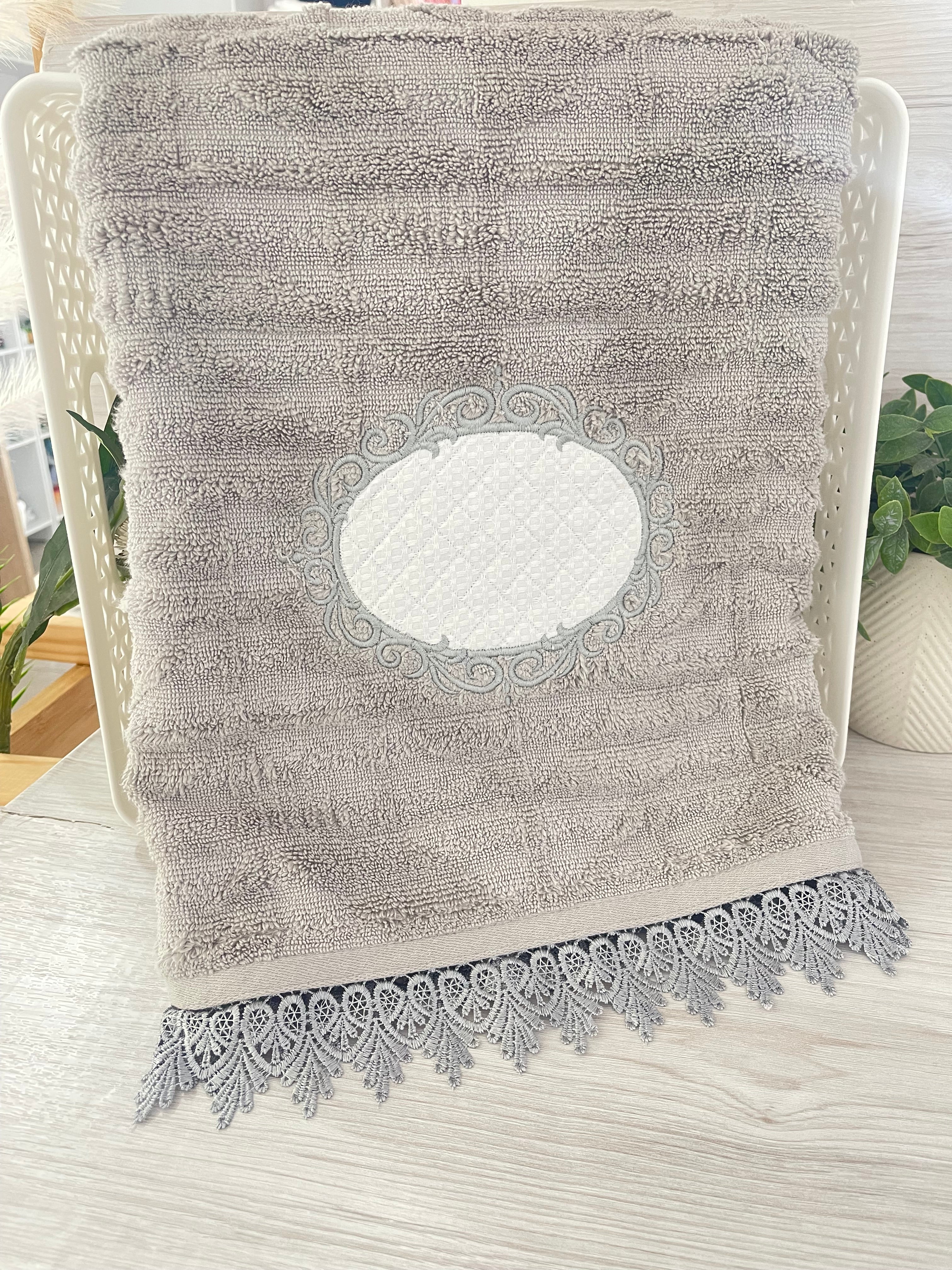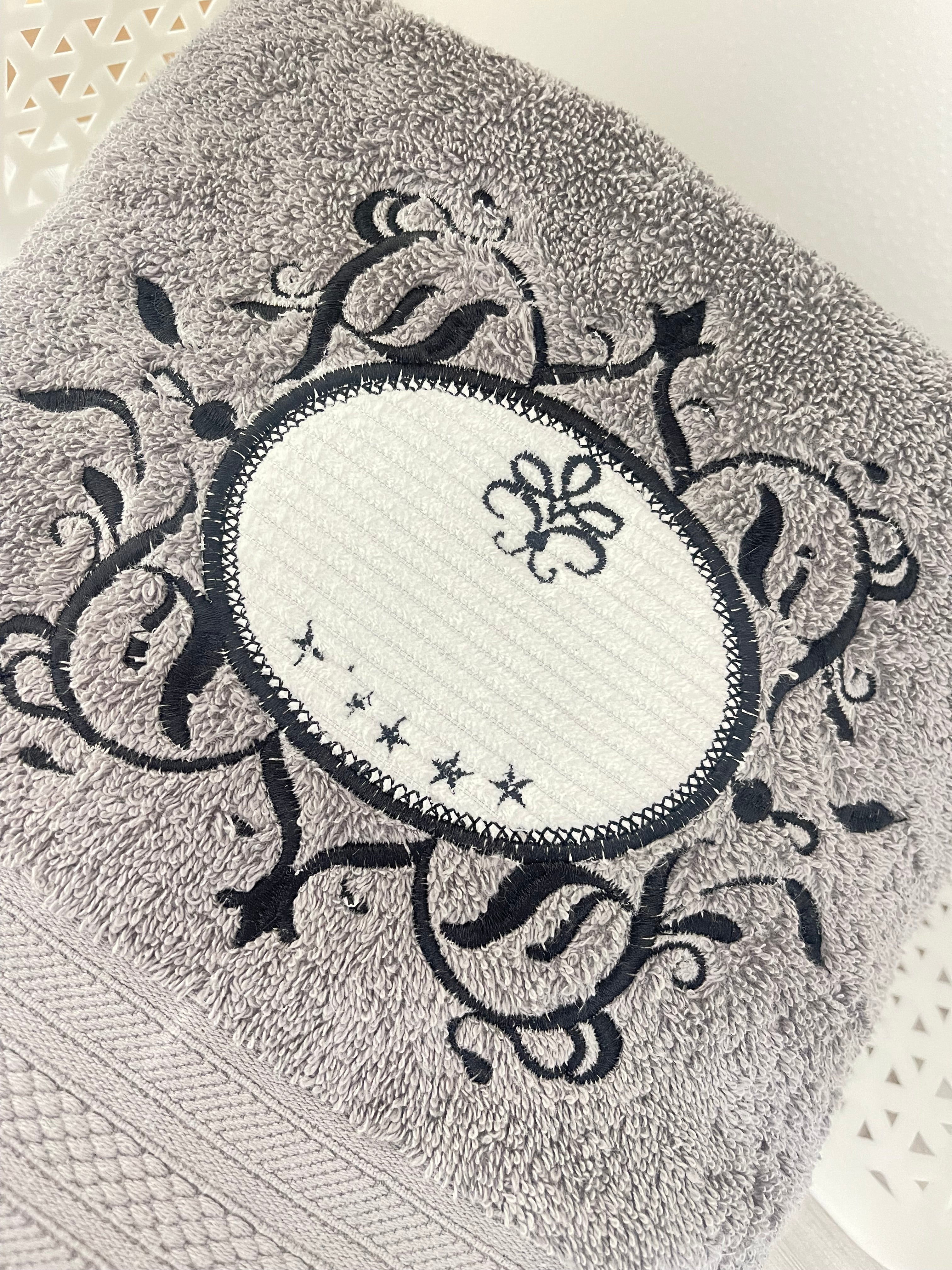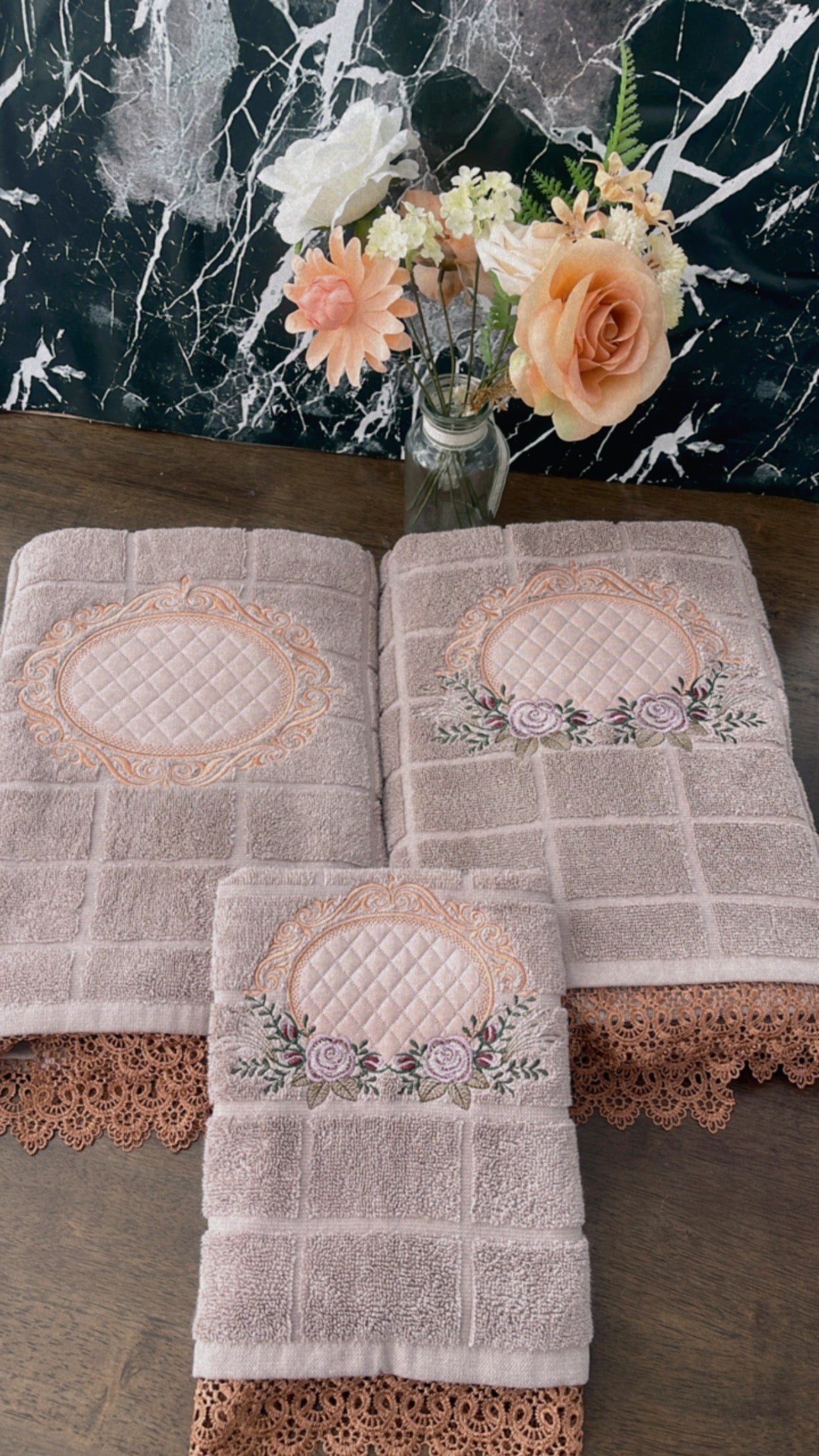 Grey Embroidery Bath Towel Set 3 pcs - Guipire Purple Double$164.99$179.99