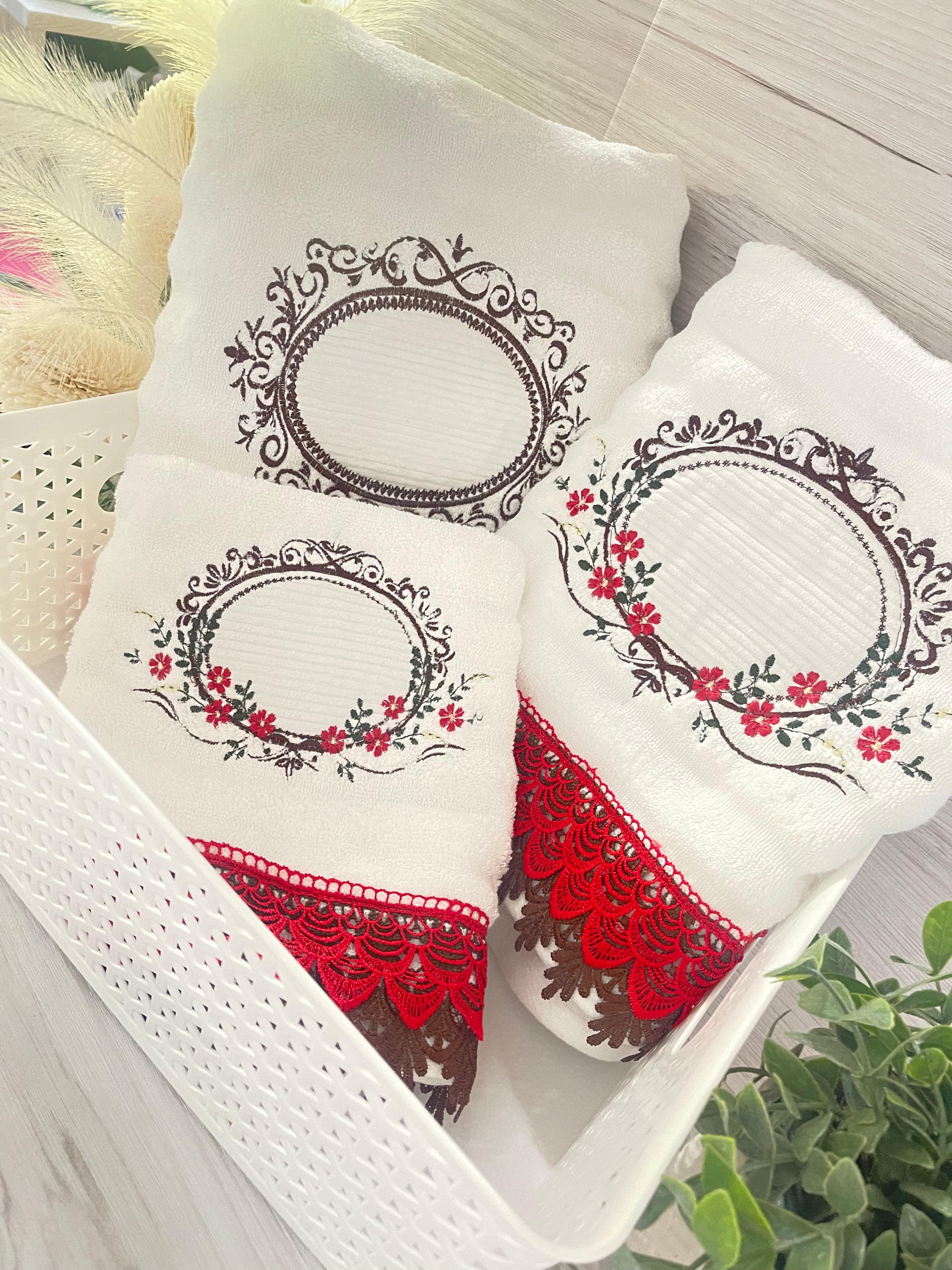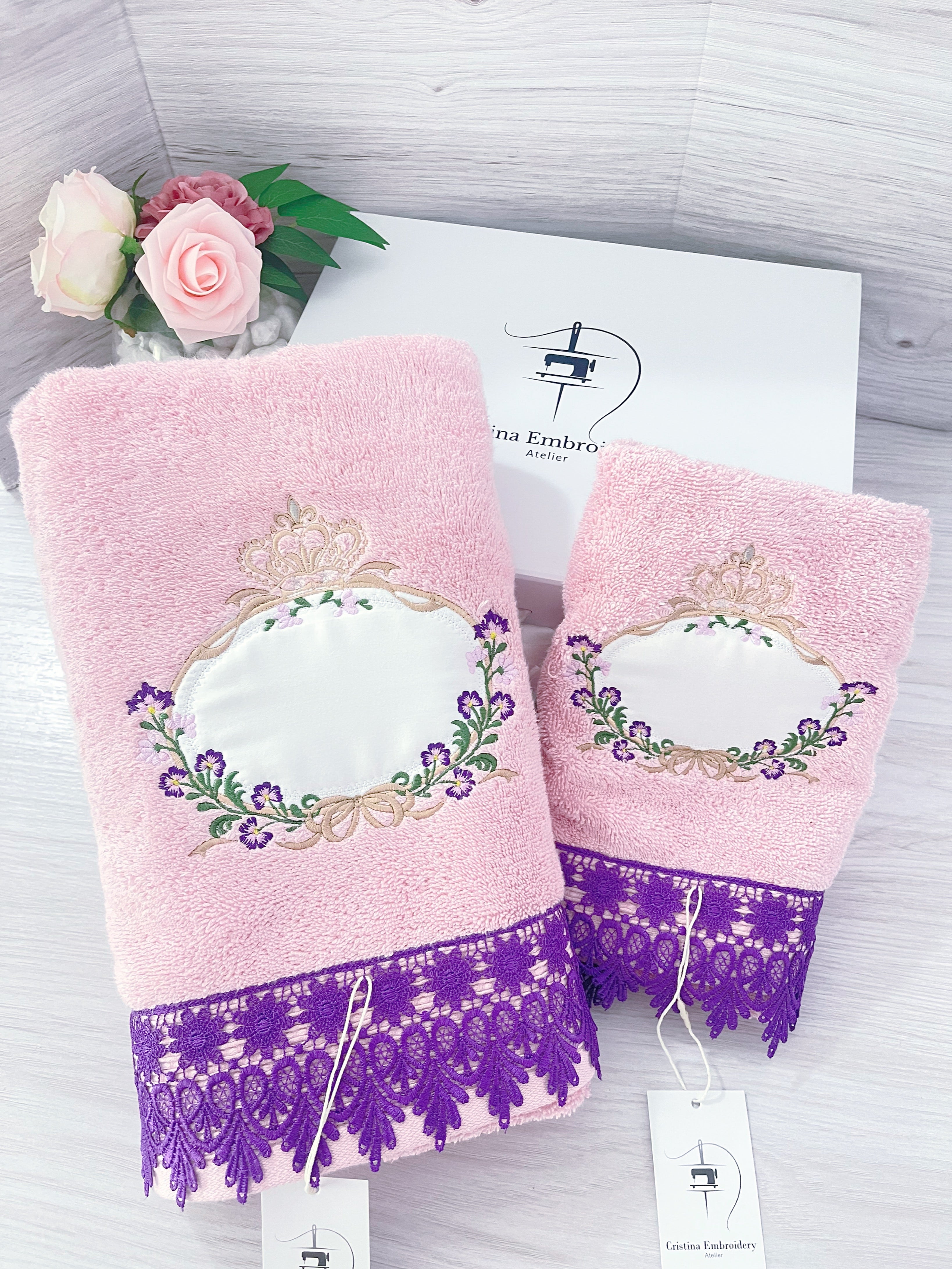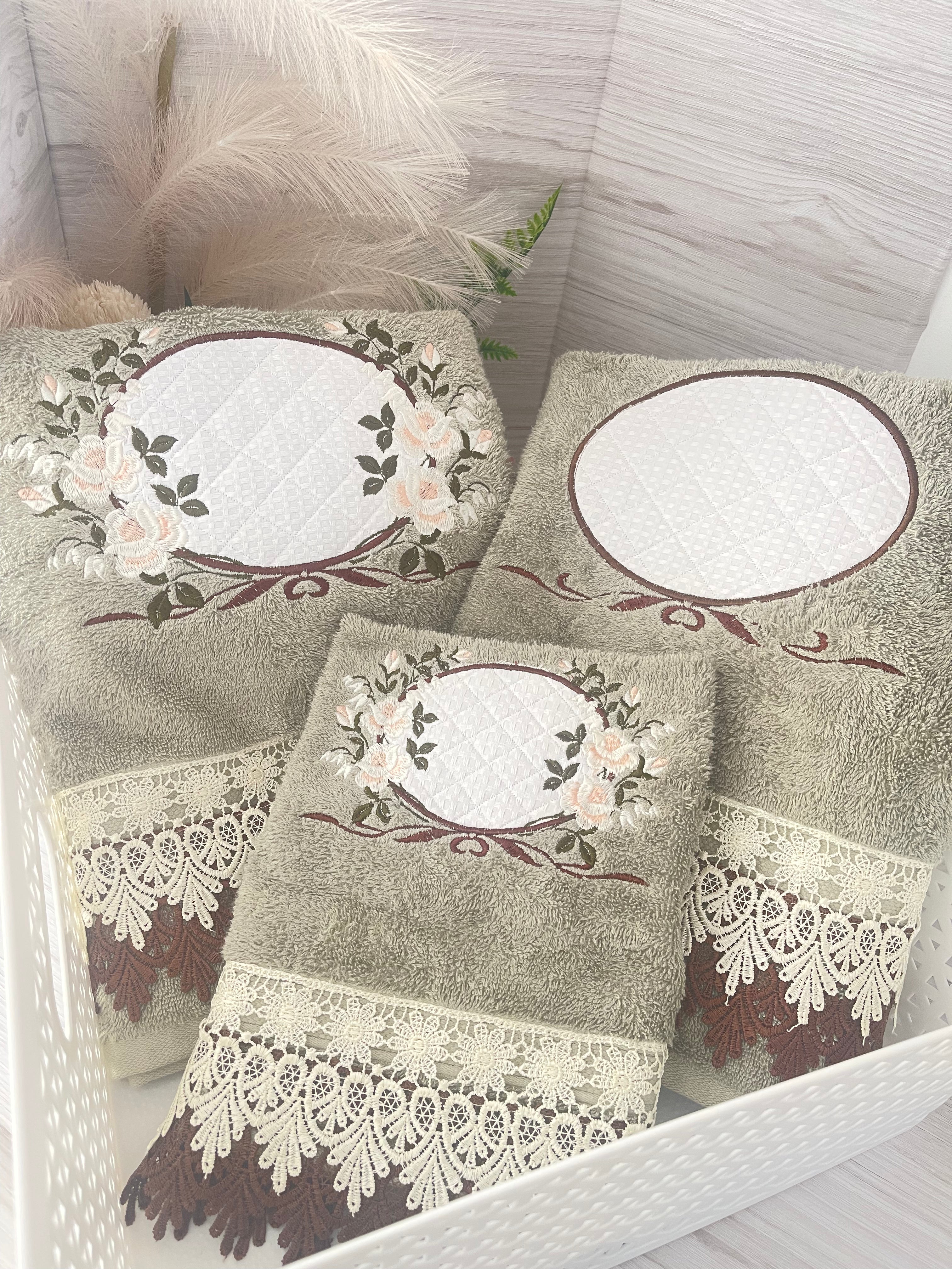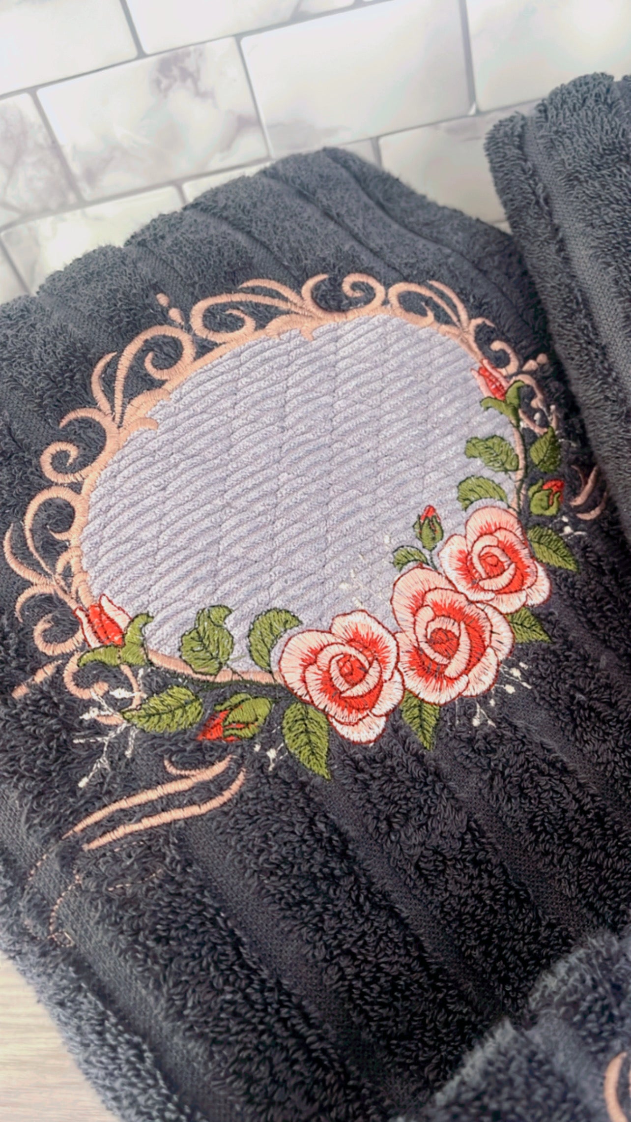 Grey Embroidery Bath Towel Set 3 pcs - Guipire Purple Double$164.99$179.99