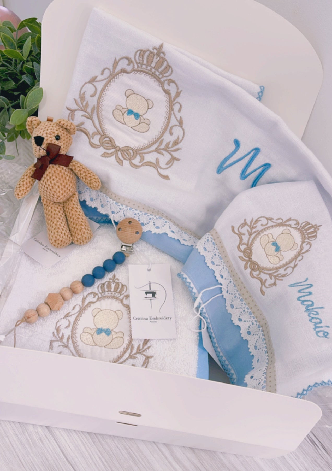 Embroidered Baby Gift Box – Handcrafted Hamper with 7 Essentials - Luxury Teddy Bear$198.90$211.60