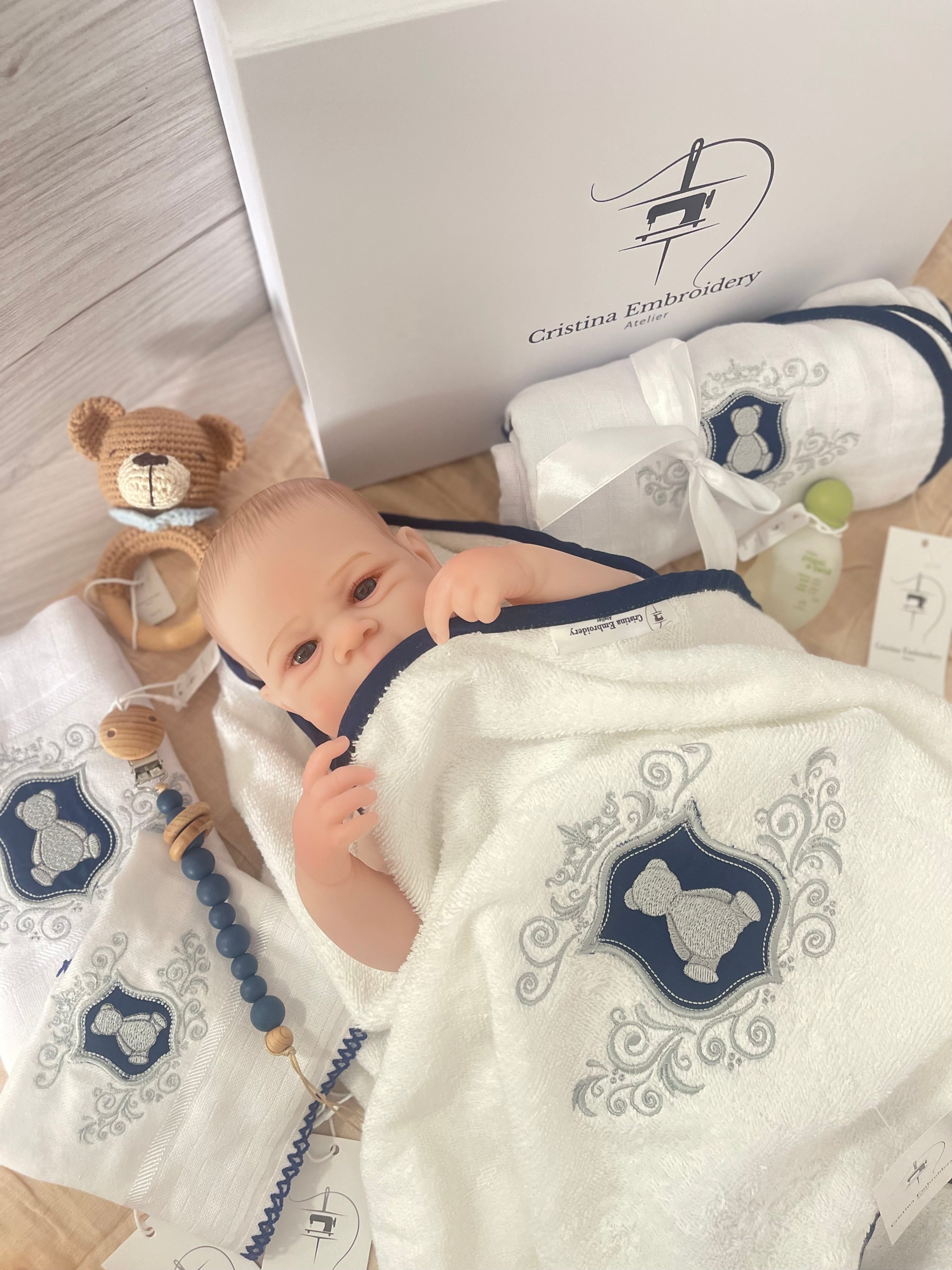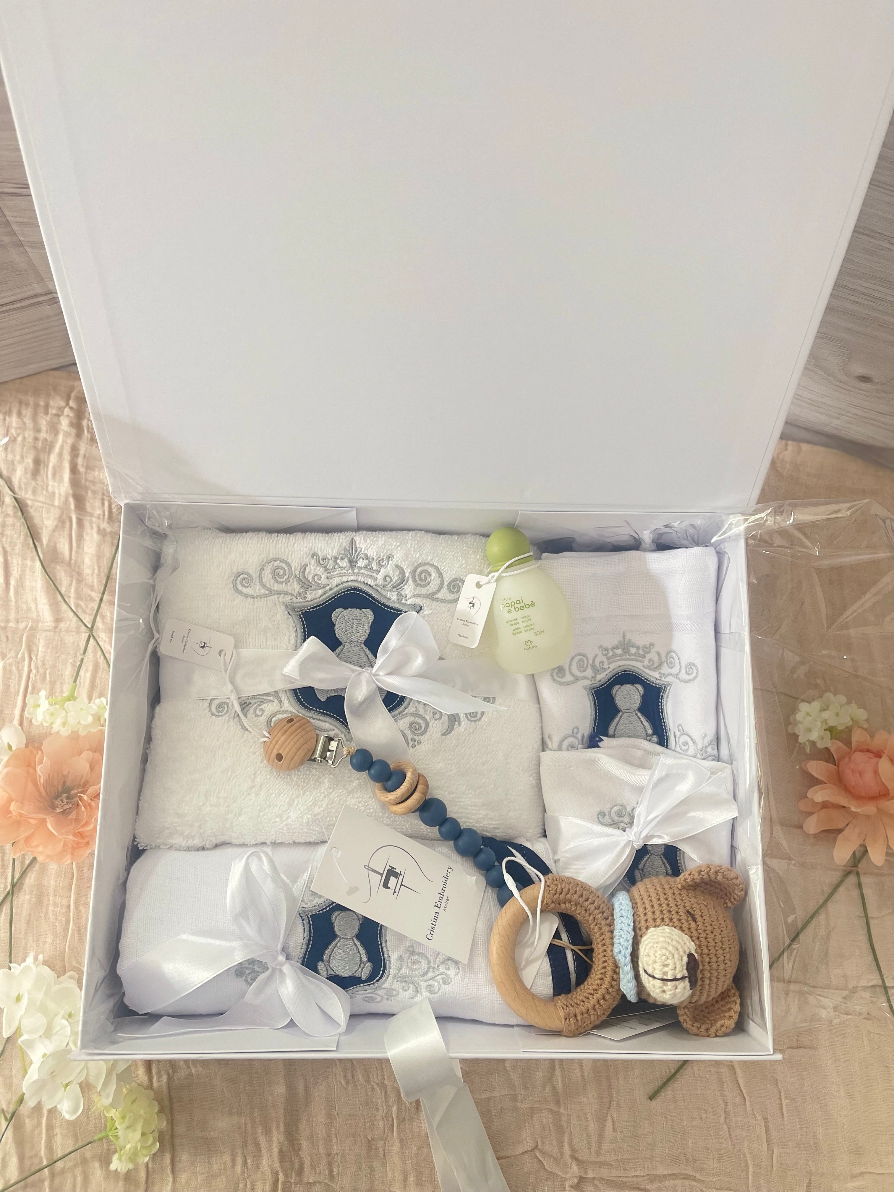 Gif Box Embroidery Hamper For Baby Boy - Gray/Navy Blue Frame 8 item$269.90$289.90