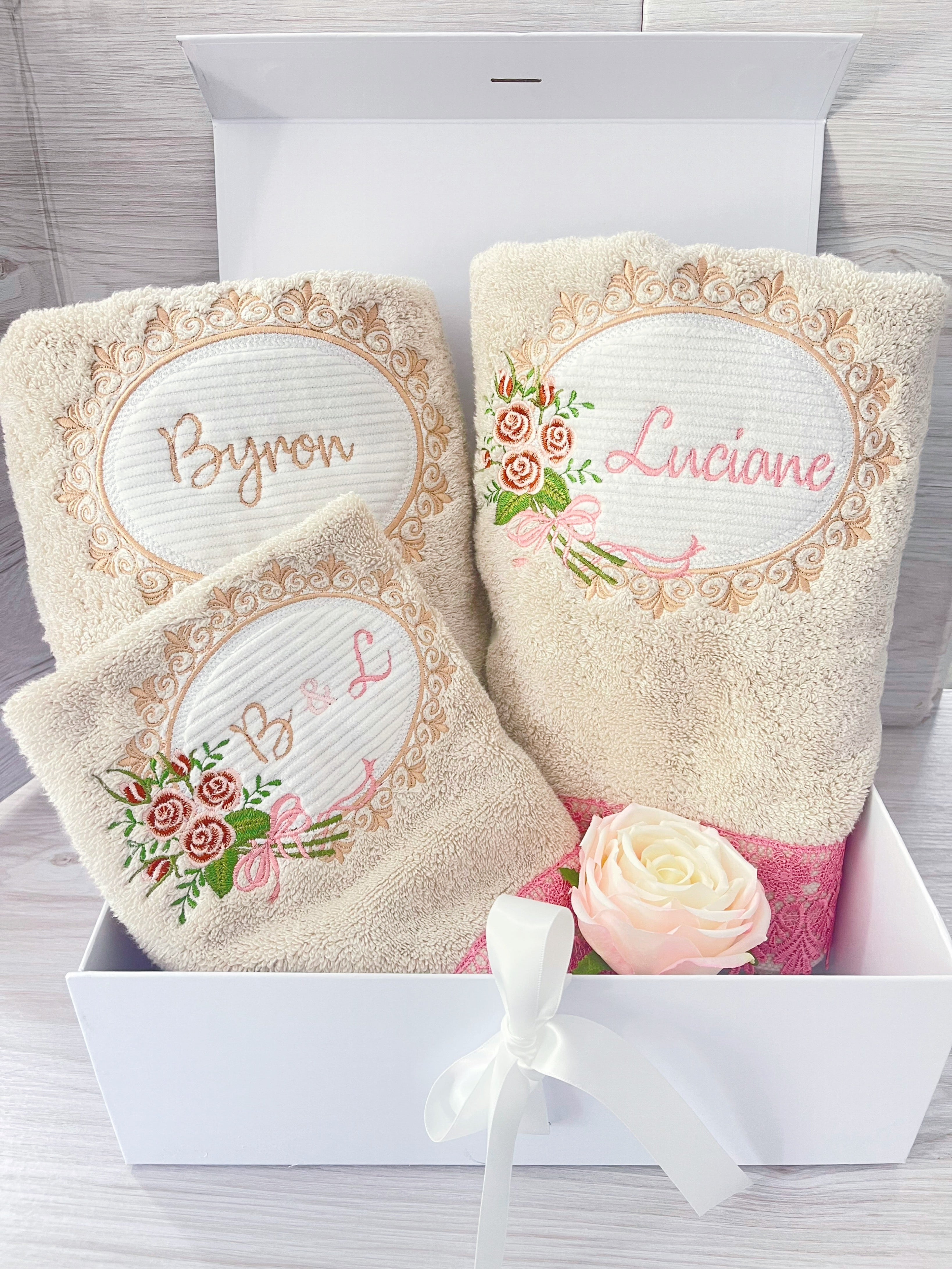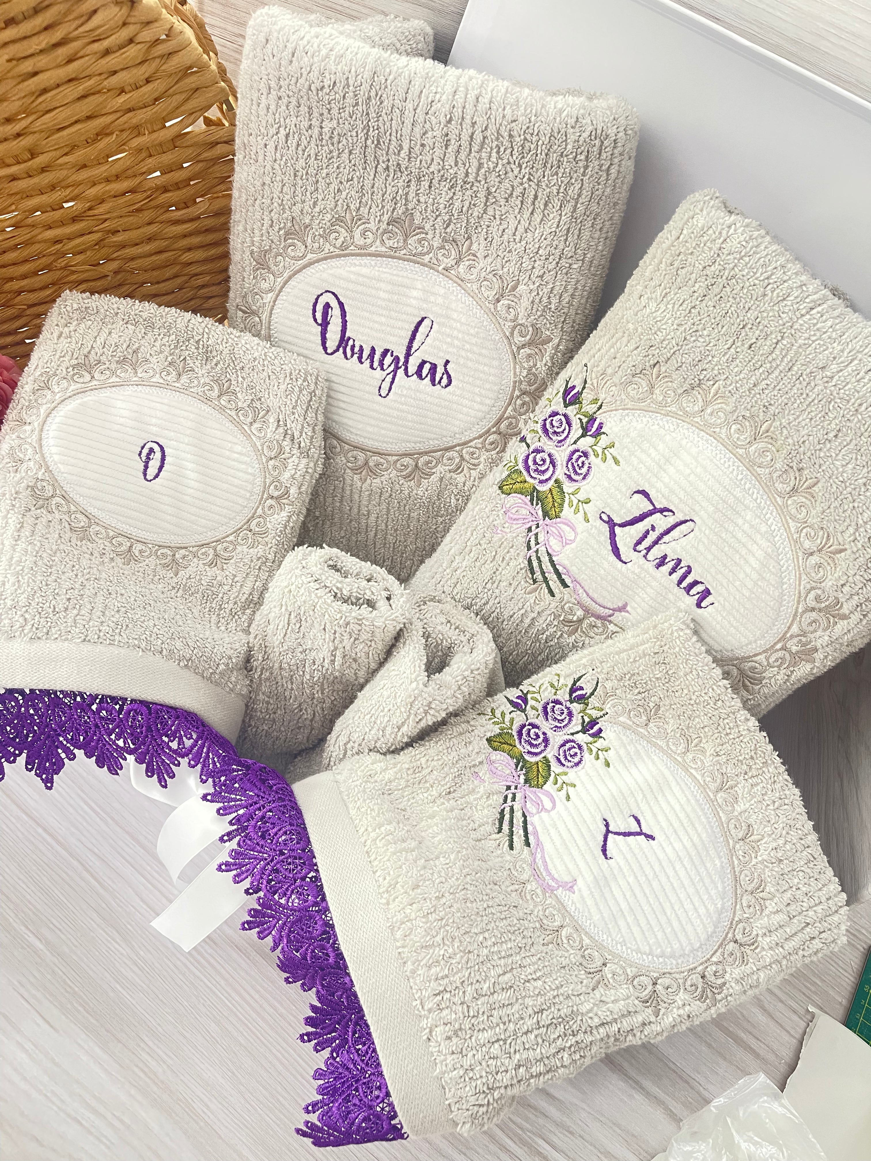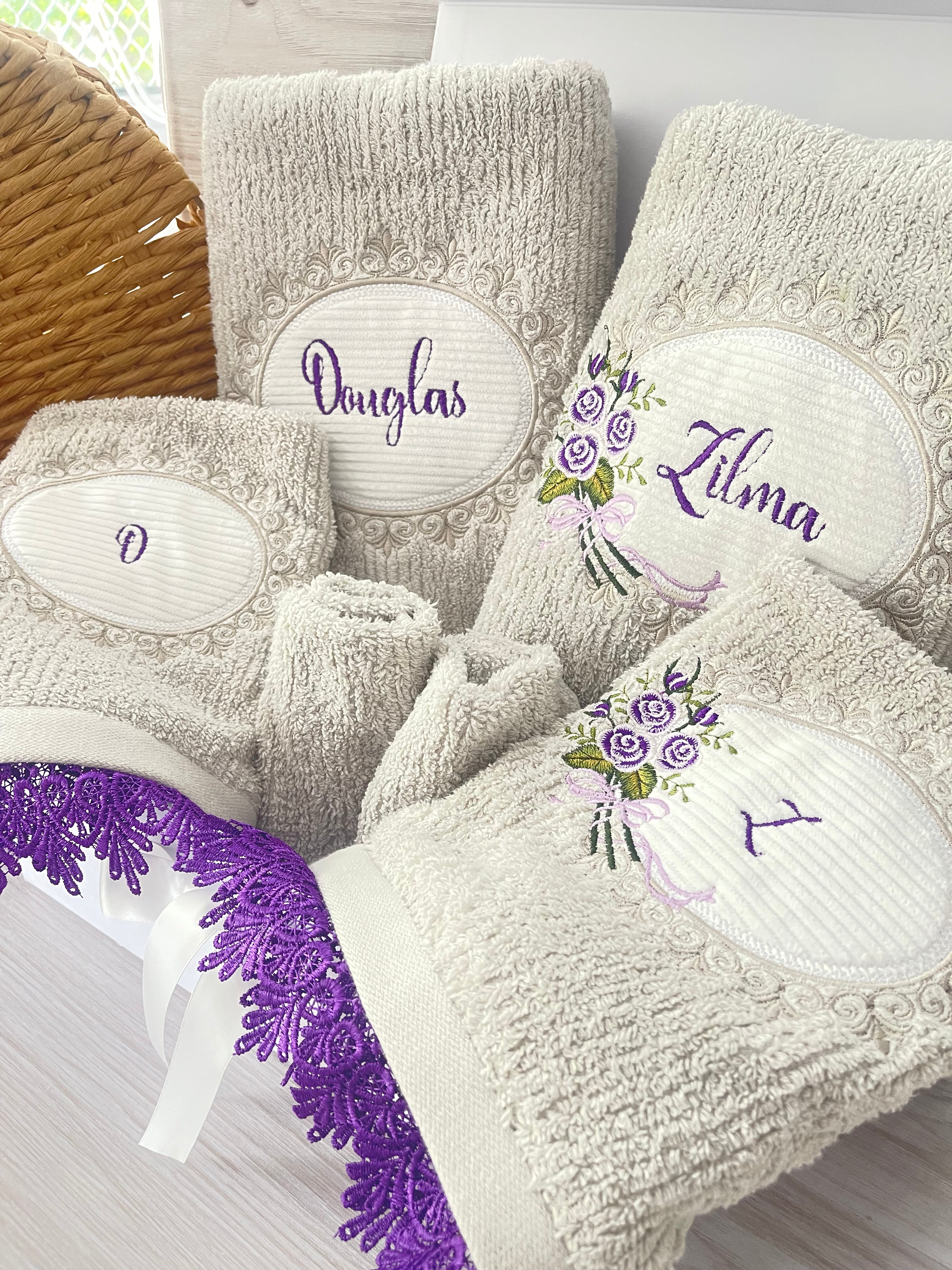 Embroidery Bath Towel Set -3 or 4 pcs - Custom Made for Wedding Anniversaries$164.90