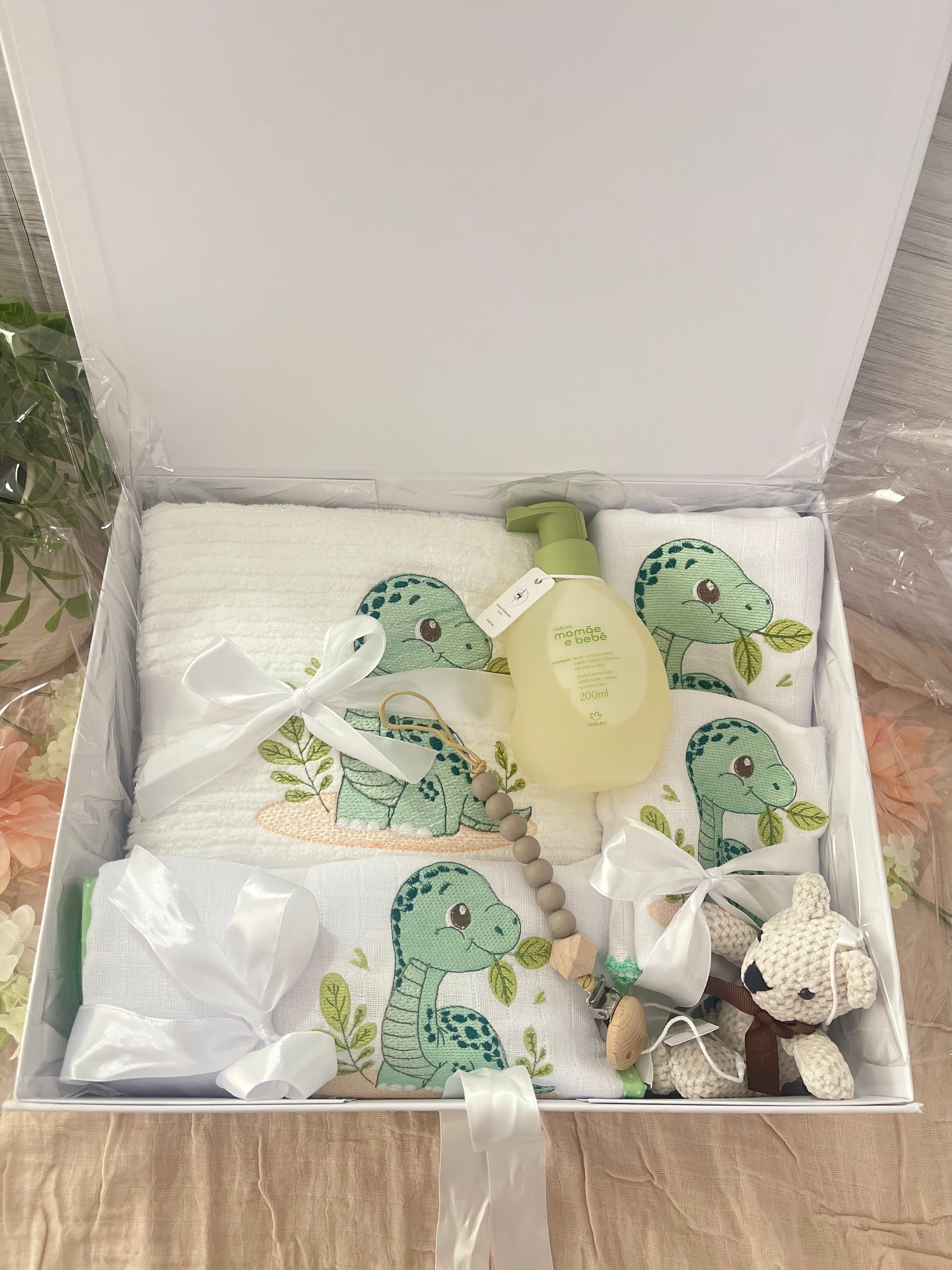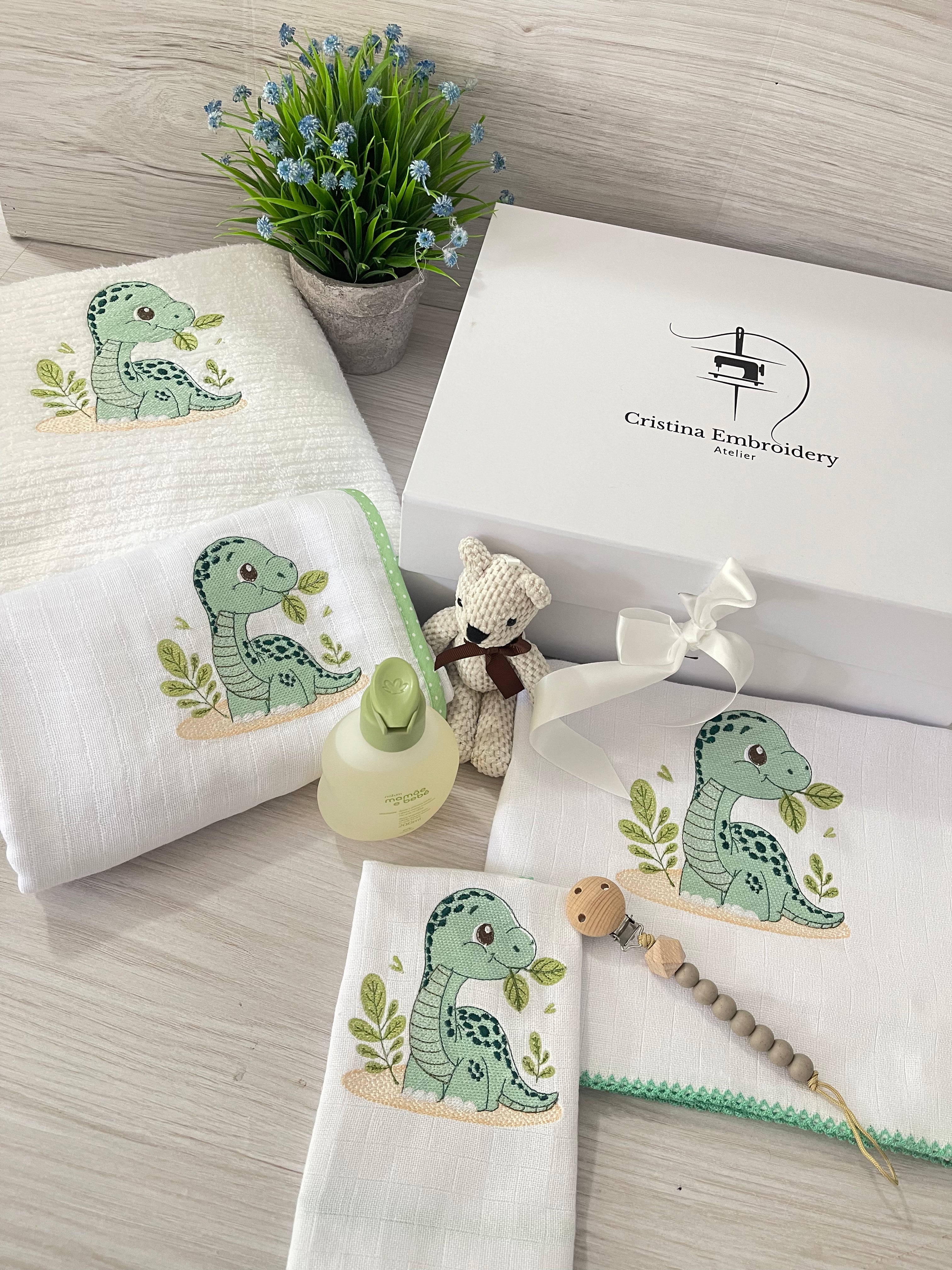Embroidered Baby Gift Box – Handcrafted Hamper with 7 Essentials - Green Baby Dinosaur$267.90$289.90